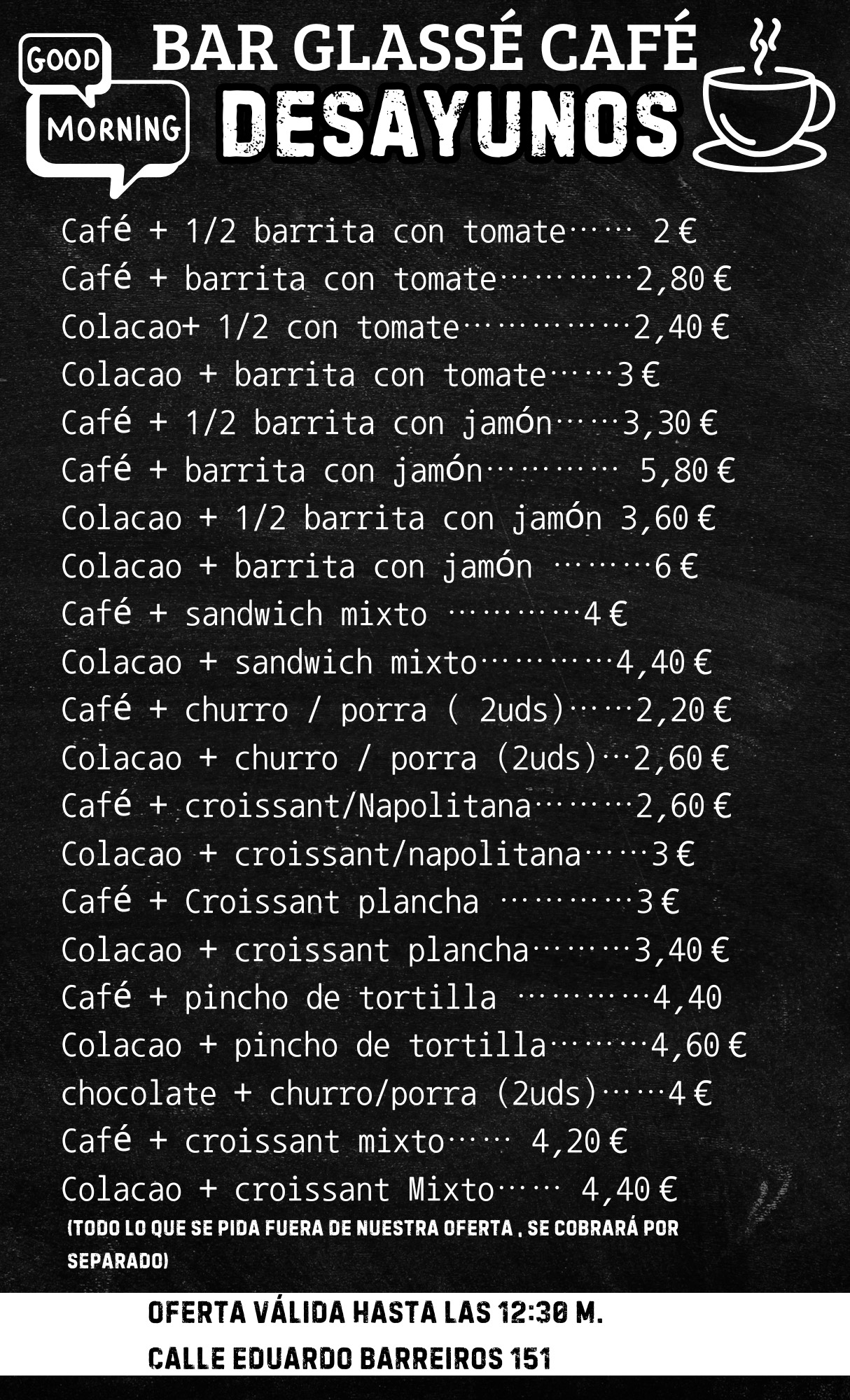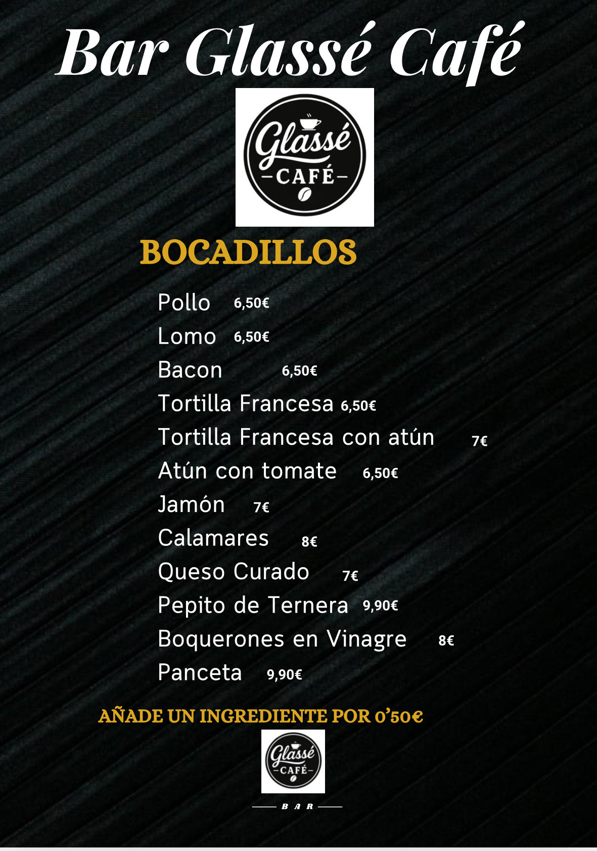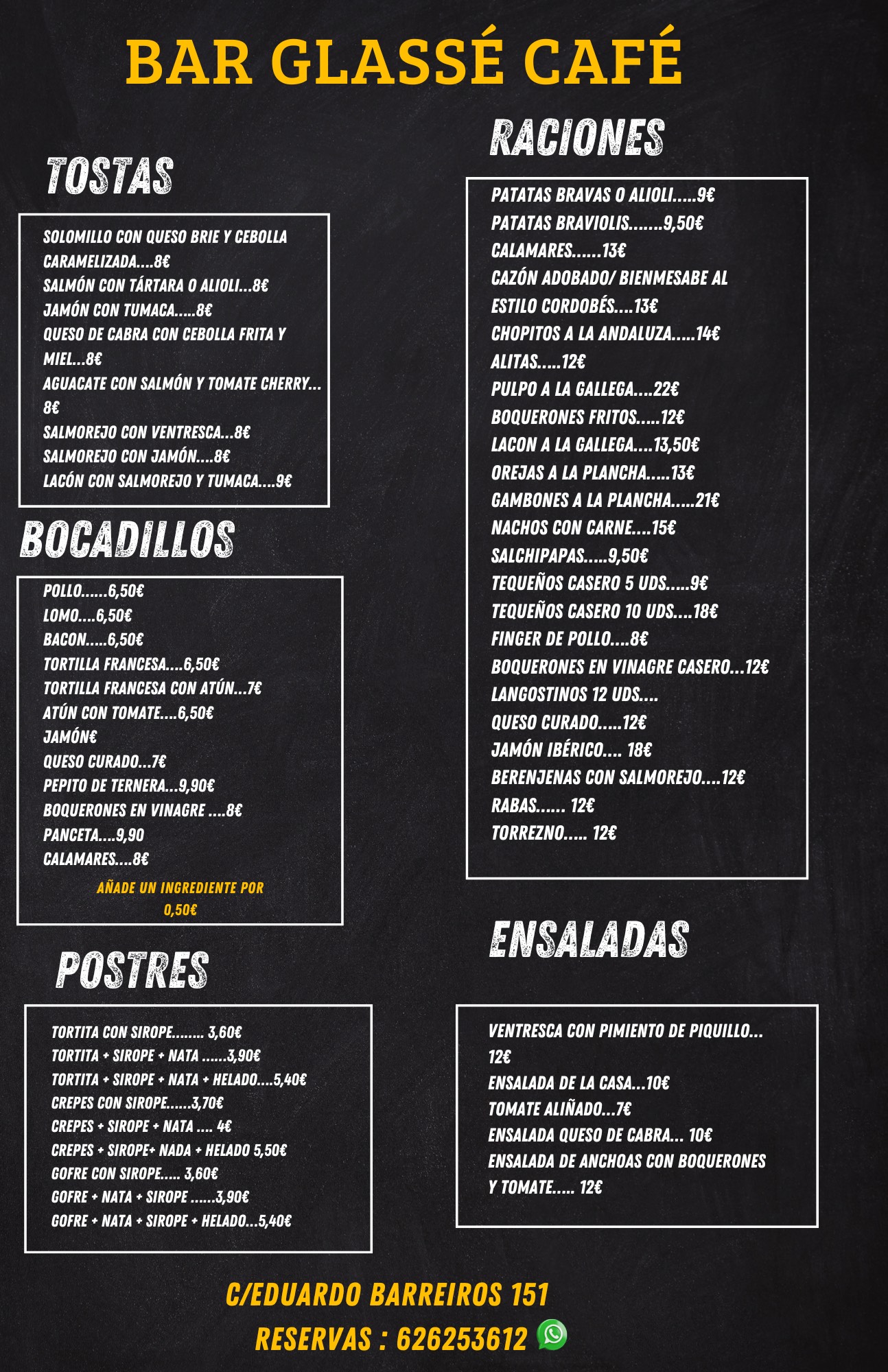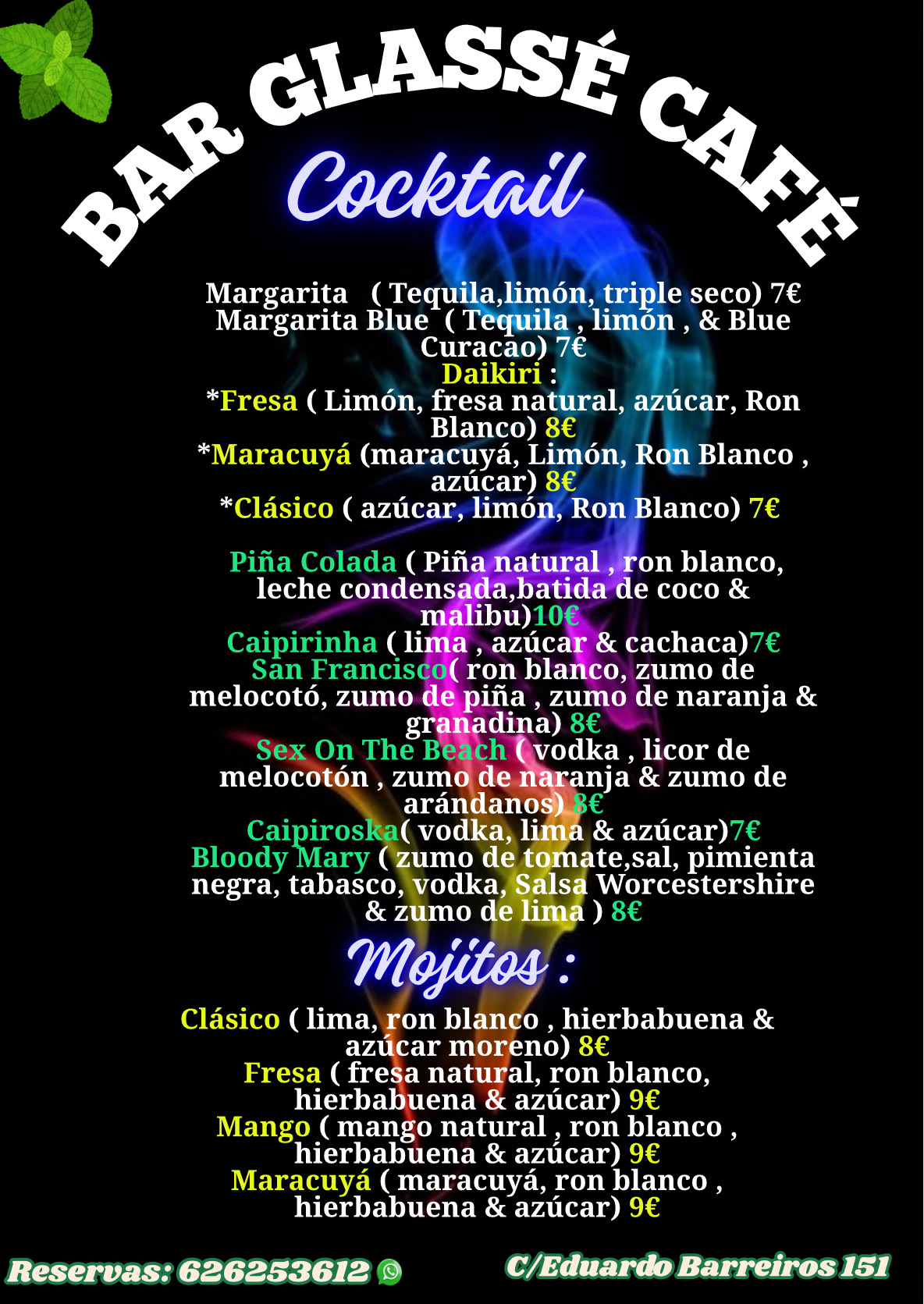 Desayunos, Platos combinados, Raciones, Meriendas, Copas , Cócteles, Batidos naturales